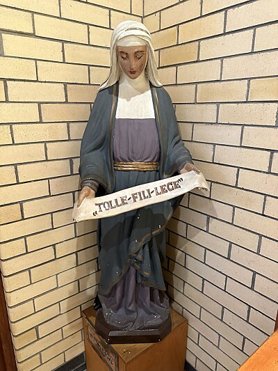 The statue of St. Monica, holding a scroll inscribed with the Latin phrase “Tolle, Fili, Lege” [“Take up, my son (St Augustine), and read (his works)”], has been a significant fixture in the cathedral, offering solace and inspiration to countless parishioners. Over the years, the statue has weathered the passage of time, its once-vibrant colors and fine details fading. The restoration promises to return it to its original splendor, capturing the hearts and imaginations of the faithful once more.