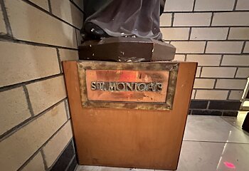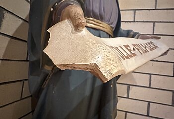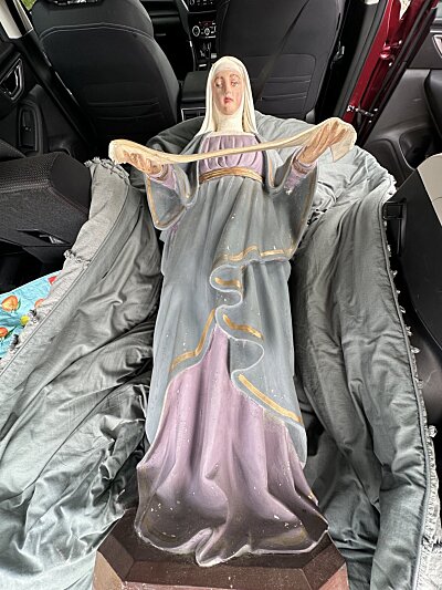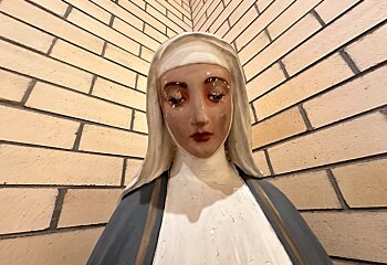 The statue of St. Monica in St. Monica’s Cathedral, soon to be restored to its former glory by a mysterious artisan.
