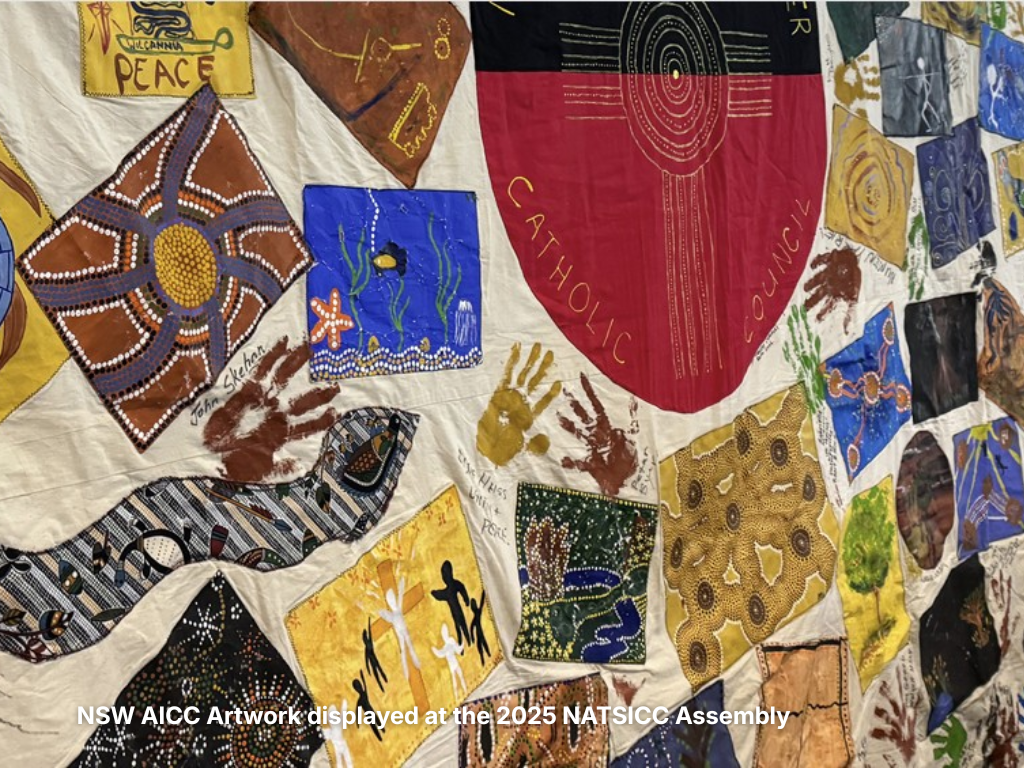 Image from Australian Catholic Bishops Conference: NSW AICC Artwork displayed at the 2025 NATSICC Assembly This is a statement