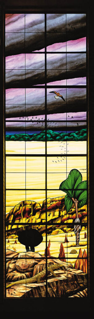 Windows 13 to 20 begin with another trio of themes – landscape, flora and fauna. They invite us into an
